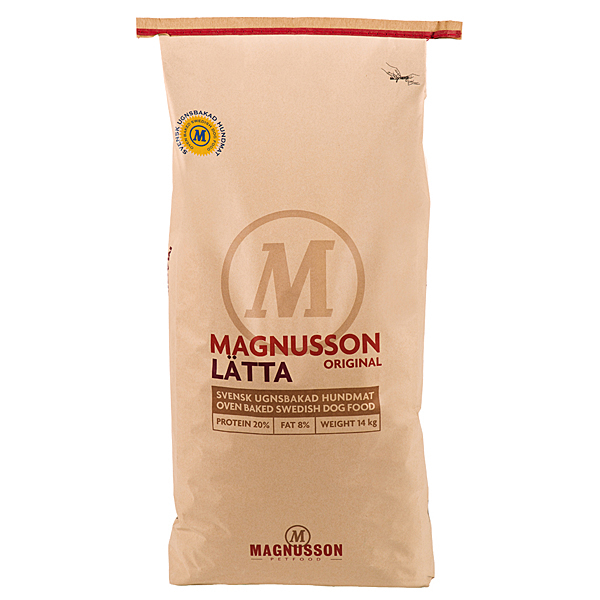 Magnusson Original Lätta ist ein Hundefutter, das speziell für ältere Hunde mit Übergewicht und für Hunde mit Allergien und Unverträglichkeiten geeignet ist. Es hat einen geringen Fett- und Eiweißgehalt und einen erhöhten Gehalt an Kohlenhydraten. Durch den erhöhten Getreideanteil im Magnusson Original Lätta wird das Verdauungssystem beschäftigt und Ihr Hund auf natürliche Weise gesättigt. Die Zubereitung erfolgt in einem schonenden Backvorgang, sodass das Futter sehr bekömmlich und leicht zu Verdauen ist. Magnusson Original Lätta hält Ihren Hund fit und lässt ihn in Würde altern. Es kann trocken oder im warmen Wasser eingeweicht, verfüttert werden.